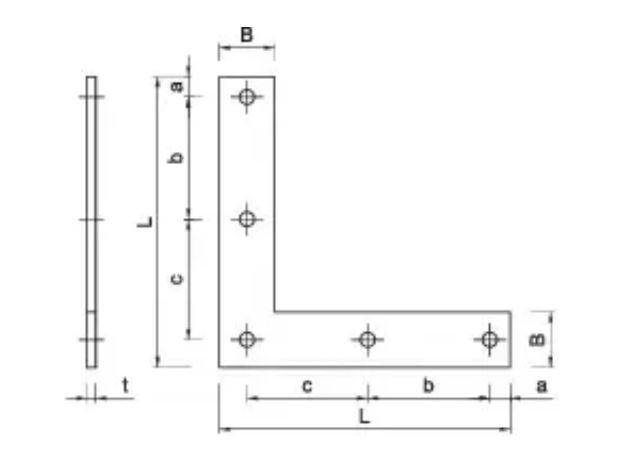Colțar drept pentru fixarea elementelor de construcție din lemn.